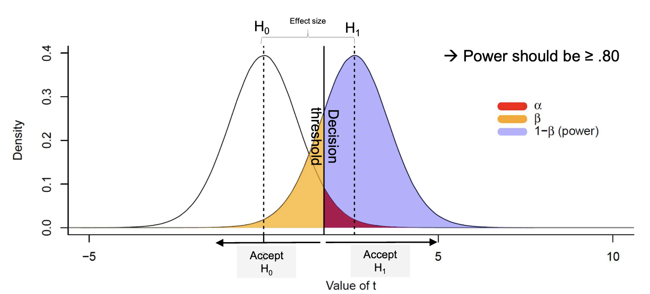 Statistical Power (): The probability of detecting an effect if it exists. Commonly set to .80.