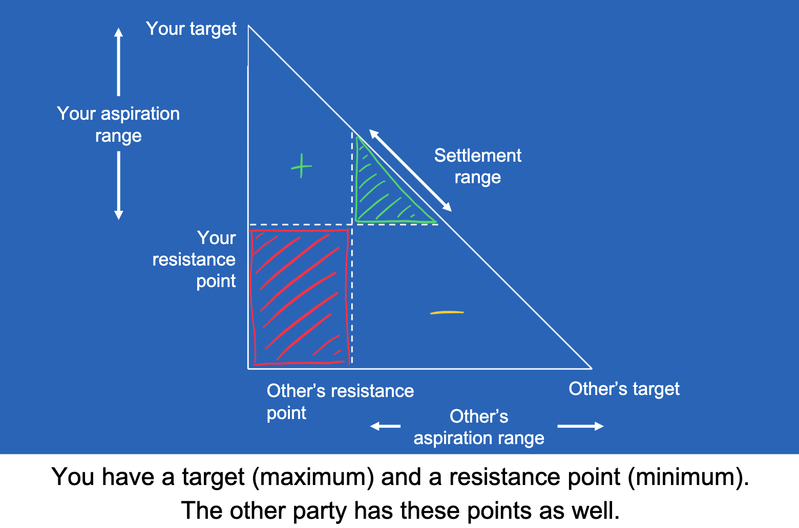 To achieve this, our own goals, BATNA, and limits, as well as those of the other party, need to be clear. During the discussion, a compromise should be achieved through bargaining tactics. (p. 9)