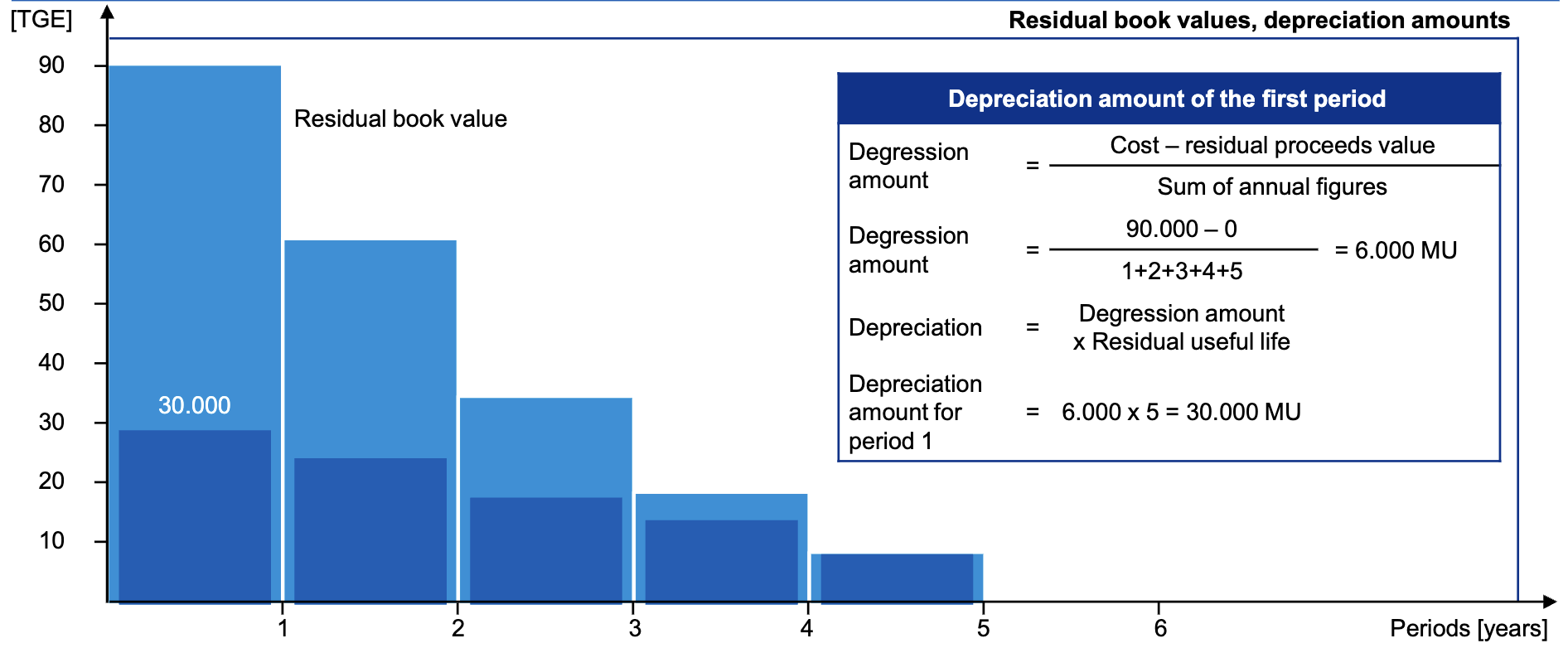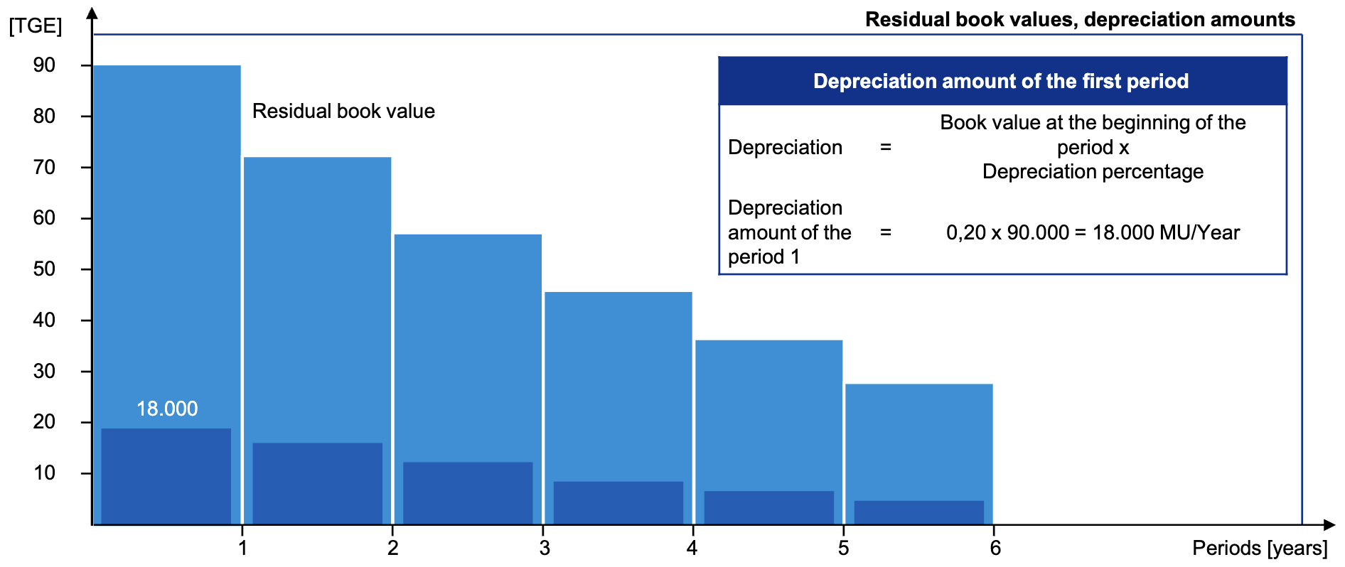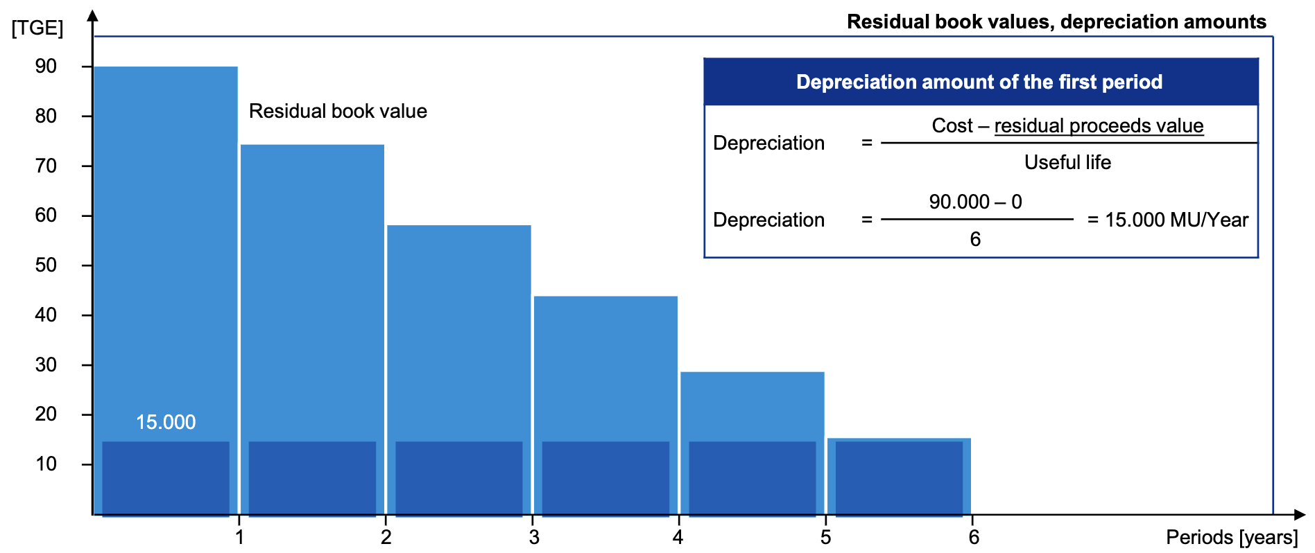 Depreciation can be bound to performance (units of production), time, or hybrid. For time-based depreciation, there are three main methods: