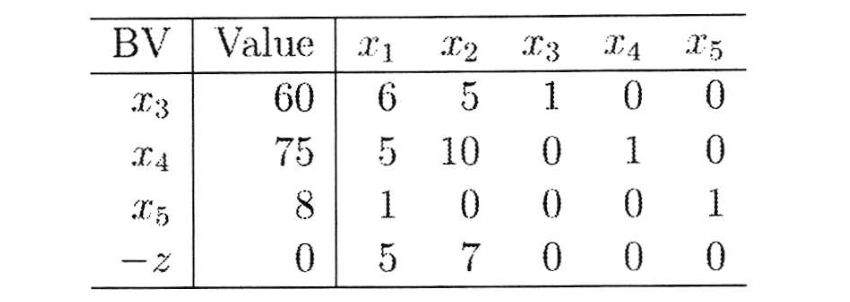 | Basic Var | x1 | x2 | x3 (slack) | x4 (slack) | b |