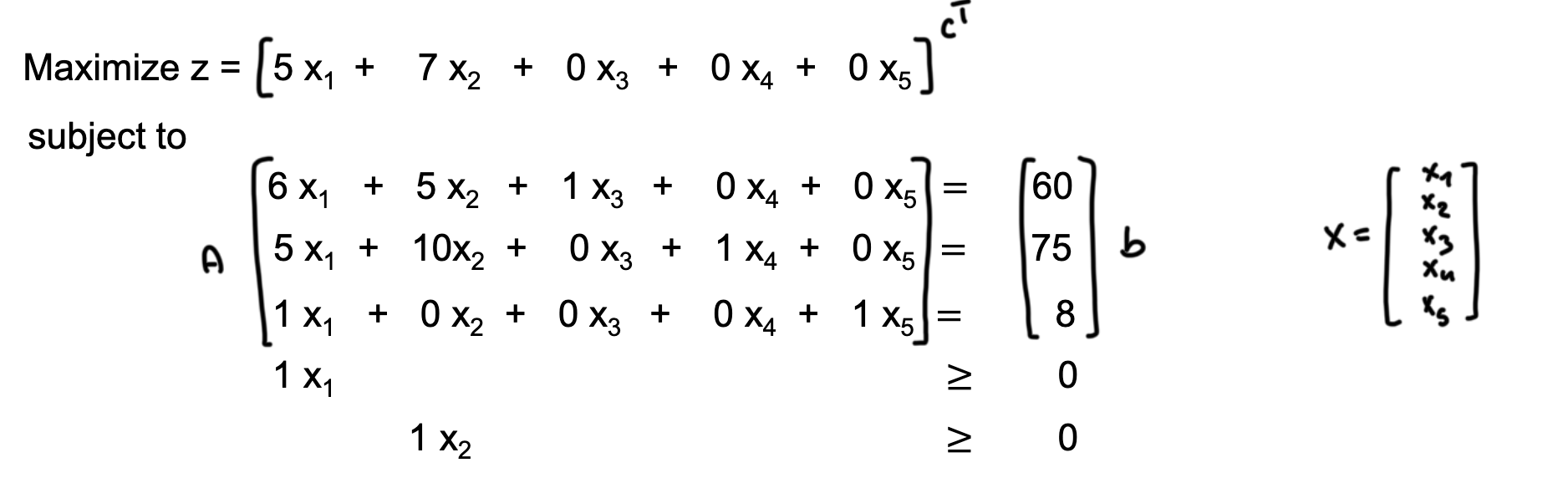 - Constraints: linear equations or inequalities