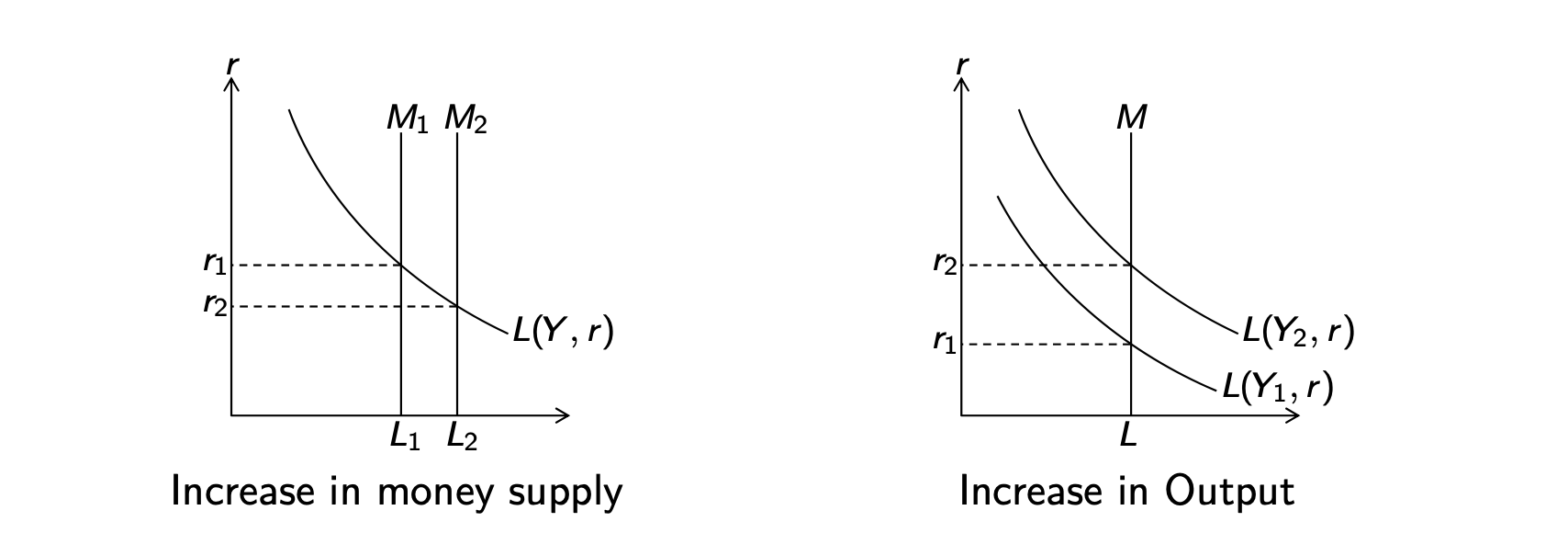 - An increase in output raises the demand for money, leading to higher interest rates for a given money supply, shifting the LM curve up/left, and vice versa.
