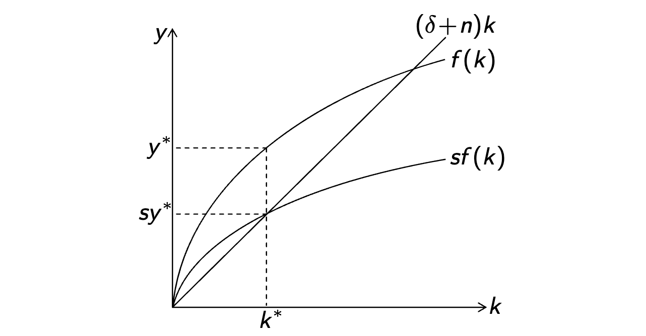 In such a case, the economy is in a steady state. Here, is the steady-state level of capital per worker, is the depreciation rate of capital, and is the population growth rate.